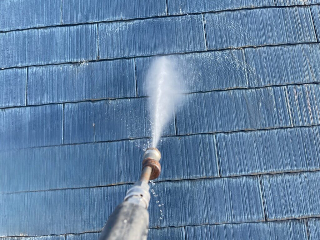 高圧洗浄とは、専用の洗浄機を使って強い水圧で外壁・屋根の表面を洗い流す作業です。