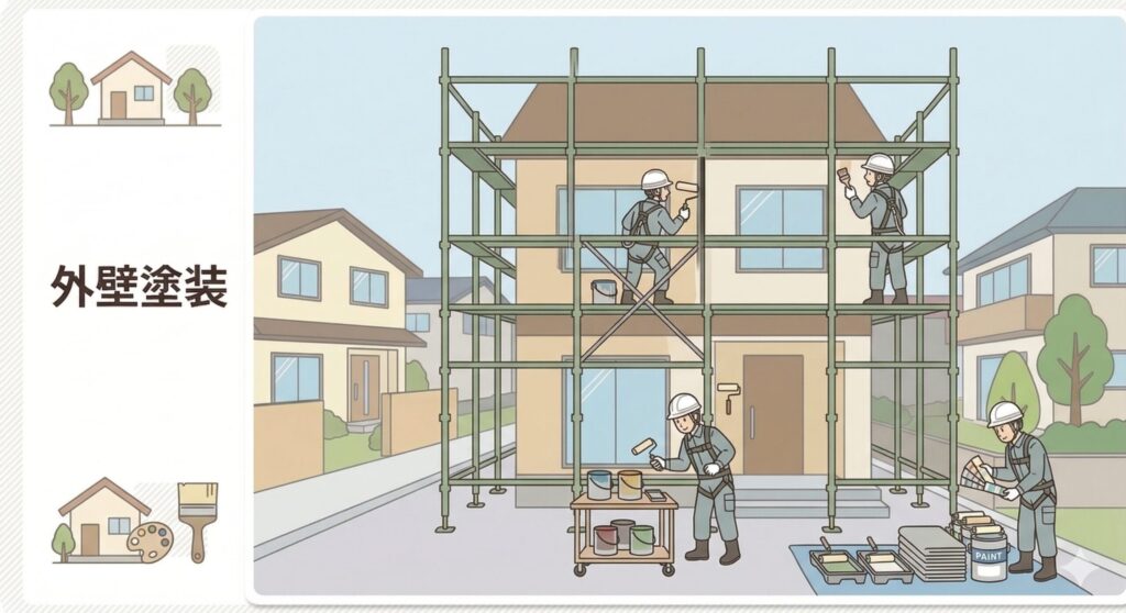 乾燥時間を考慮しながら外壁と並行して進めるのが一般的です。