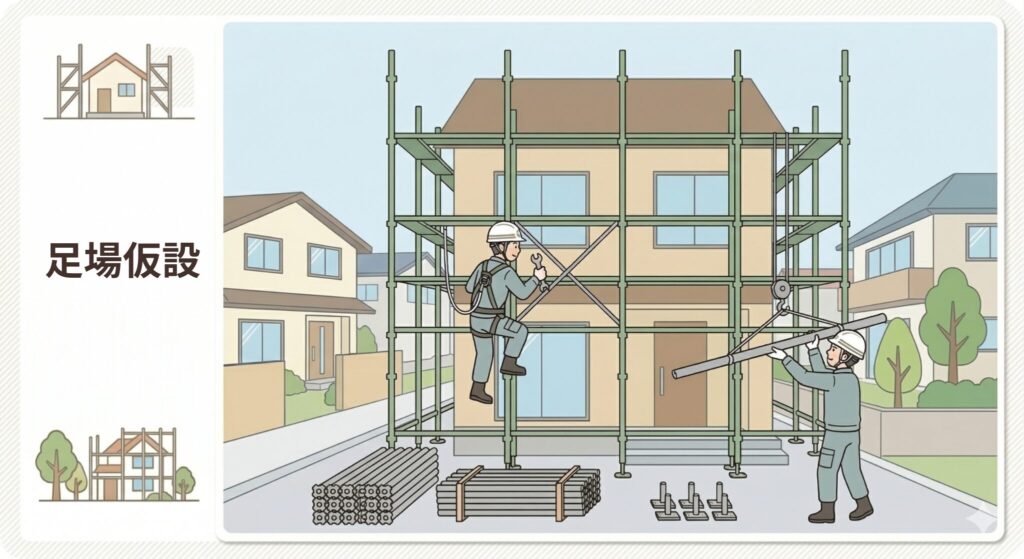 外壁と同時施工の場合は足場期間を含めて10〜14日前後かかるのが一般的です。